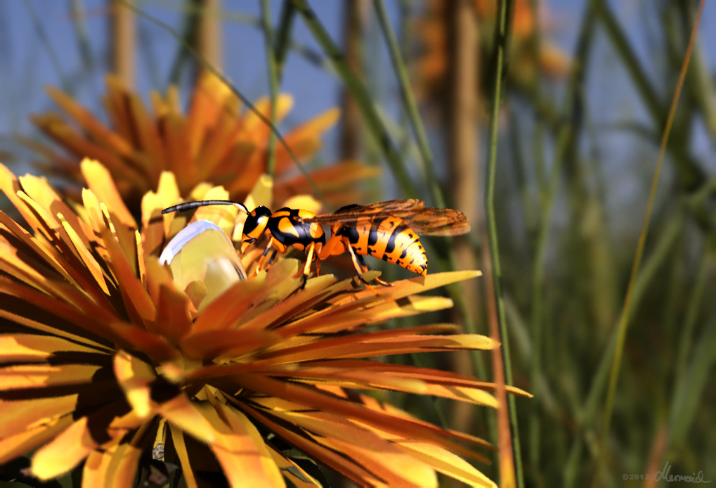 Die Wespe ist ein Modell von De Espona aus den ganz frühen Zeiten des 3d Modellings, welche sich mal auf CD mit einem Buch zusammen erworben habe. -