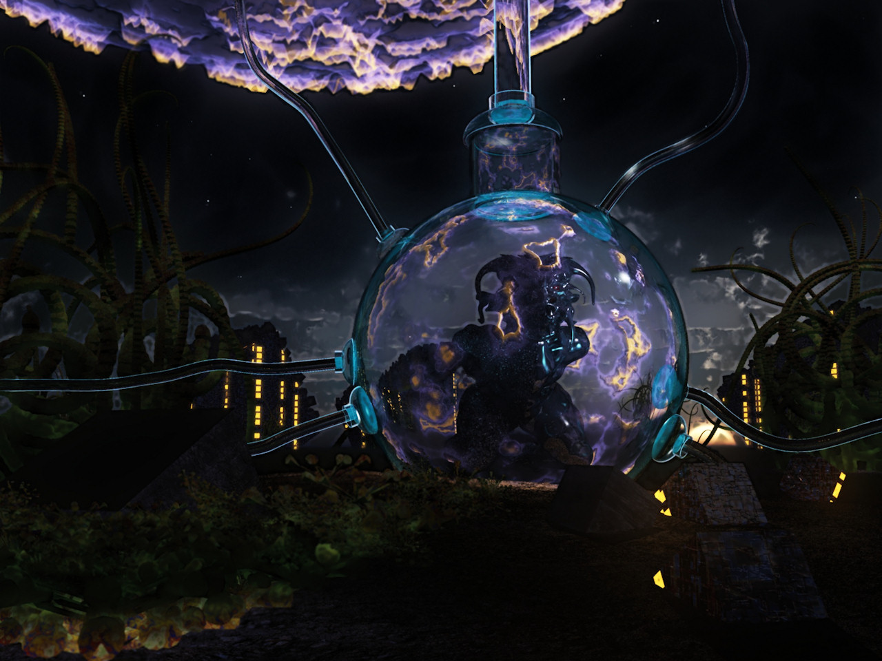 ja kann ich, ich hab ihn halt noch nicht texturiert, den Guten, aber ich hab mal einen Render gemacht mit ihm, den ich auch hier hochlade,... das Glasgefängnis ist auch selbstgemodelt in Vue