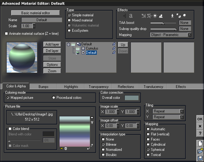 Zum einen kannst Du eine Kugel erstellen und das Bild im Materialeditor drauflegen - ich hab das dann noch mit einem Wolkenlayer etwas verbessert und das Bild im Materialeditor im Effektetab leuchtend eingestellt.