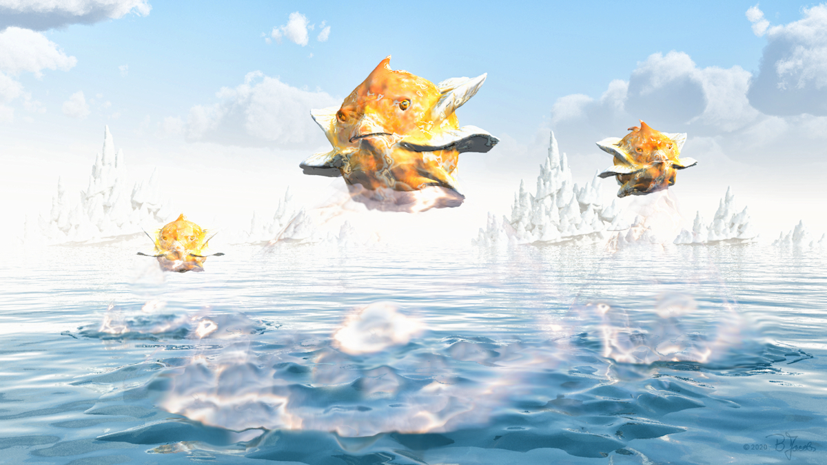Dies ist eine ganz besondere Art auf Blue Moon, die im und außerhalb des Wassers lebt und eine einzigartige Art des Reisens über dem Wasser entwickelt hat. Die Haut dieses interessanten Wesens hat eine Art elektrische Ladung. Wenn der Yodaic Spherefish über dem Wasser unterwegs ist, sendet er mit dieser Ladung einen Kegel aus, der ihn über dem Wasser hält und über den Wellen schweben lässt. Zum Glück für andere Meerestiere schadet diese elektrische Ladung nicht etwas, das sich unter oder außerhalb des Kegels befindet, obwohl ich mir über die Situation innerhalb des Kegels nicht sicher bin und es nicht versuchen wollte