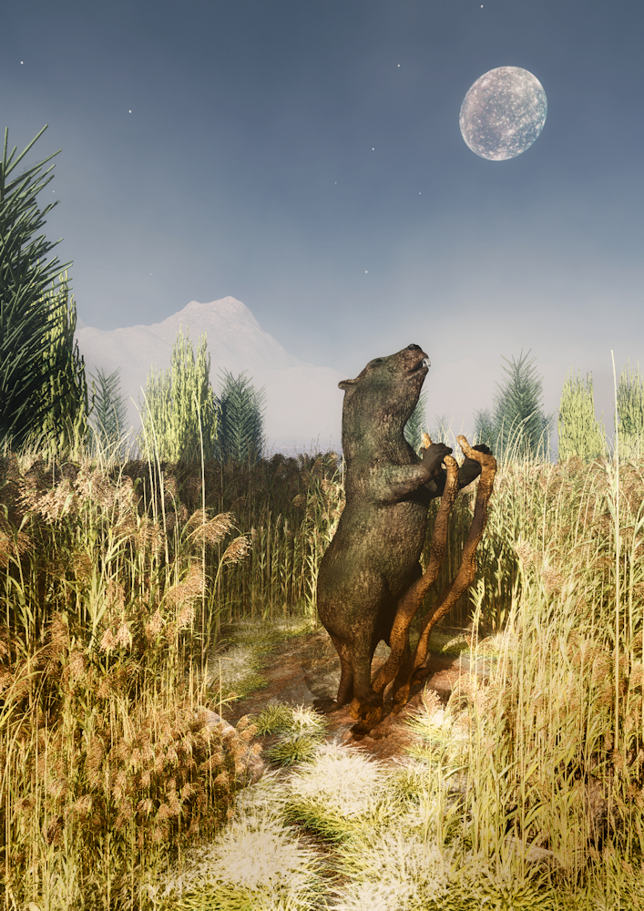 Nun aber kann ich von meiner zweiten Expedition in die Feuchtgebiete Blue Moons berichten, in denen der Stelzenbieber lebt. Er ist wohl entfernt verwandt mit dem Stelzenbieber von Ari Moon, zeigt jedoch ein wirklich erstaunliches Verhalten. Da er nur über einen schlechten Geruchssinn verfügt und daher quasi zum Überleben auf seine Augen angewiesen ist, zählt er zu den seltenen Tieren, die Werkzueuge benutzen - daher auch der hier wirklich treffende Name. Aufgrund seiner Körpergrösse kann er naturgemäss nur schlecht über die Vegeation hinausblicken, um sich zu orientieren. Er ist aber in der Lage, sich aus herumliegenden Pflanzenteilen mittels seiner scharfen Zähne Stelzen zur fertigen, auf die er klettern kann, um so den Überblick zu behalten. Ein solches Verhalten ist wohl einmalig und höchst erstaunlich, stellt sich doch die Frage, wie er auf diese Idee gekommen ist. Weitere Forschungen werden hier vonnöten sein.