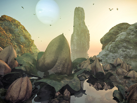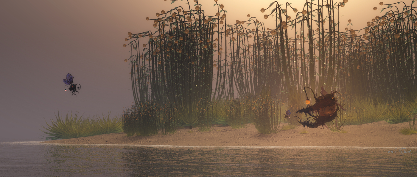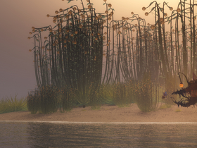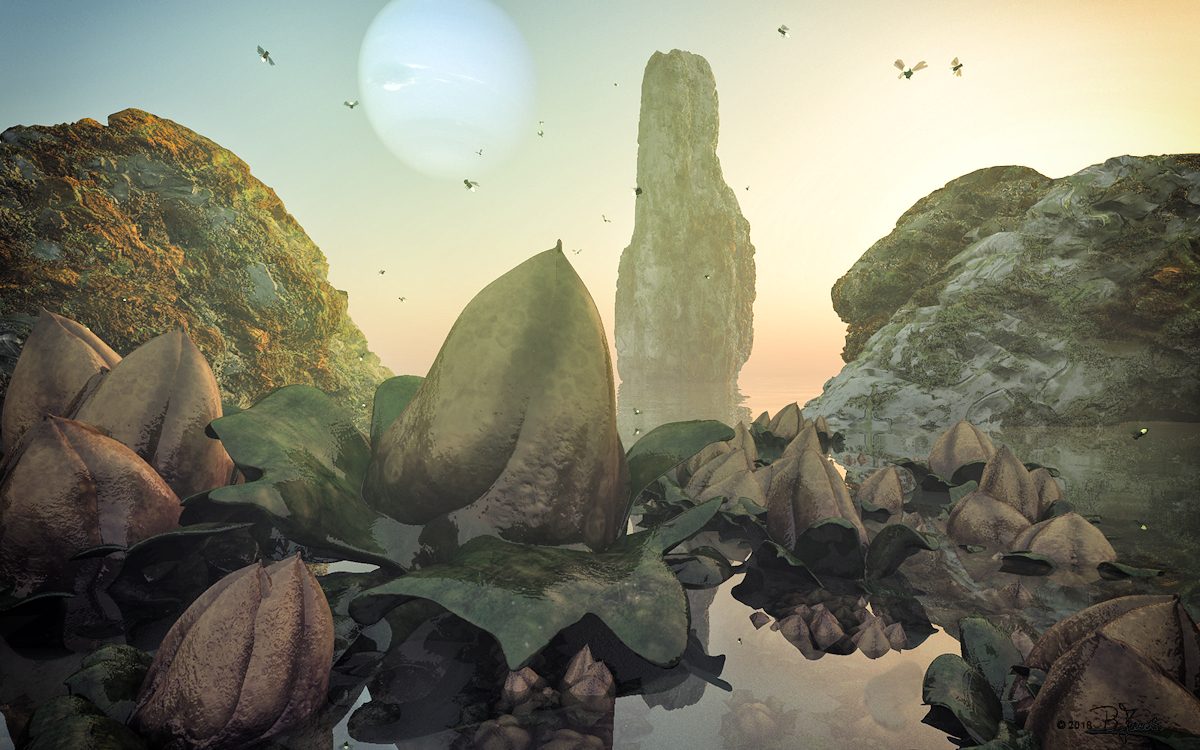 Und diese Phase ihres Lebenszyklus können wir hier sehen. Wie ein Nebel lösen sich die Sporen von den Fruchtkörpern unter den Zwillingsmonden und ziehen weiter, um neue Regionen zu erobern.