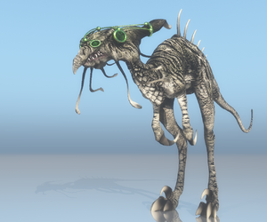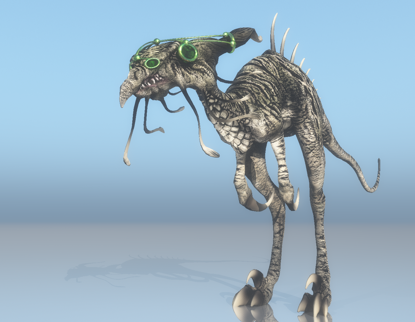 Auf meiner jüngsten Reise nach Blue Moon, einem Planeten im Arietis System, hatte ich die Gelegenheit, die Spinnenpflanzen Wüste zu besuchen. Ich muss sagen, ich war ausserordentlich erstaunt, auch dort den Lesenaugen Raptor vorzufinden, in einem doch im Vergleich zu Ari Moon recht unterschiedlichen Habitat.