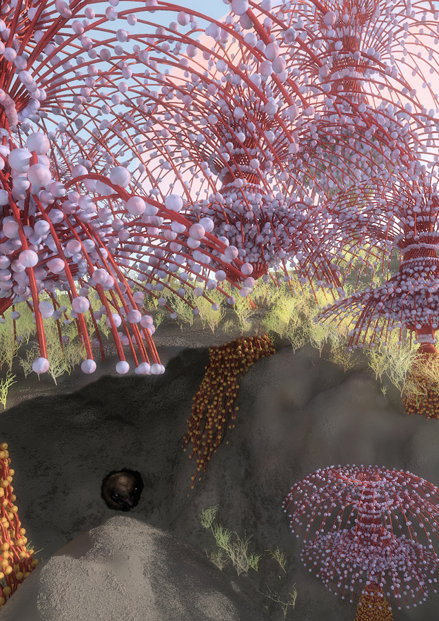 Der EInbeingrabmull ernährt sich vorzugsweise von den kugelartigen Wurzelauswüchsen der Elegantiapflanze ich hoffe es wird mir gelingen, dies demnächst in meinem Forschungsbericht ausführlicher darzustellen