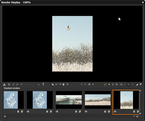 Für Ausschnitte wenn man Kleinzeugs im Hintergrund hat oder z.B. einen Vogel im Geäst und nicht sehen kann, ob der schwebt oder auf dem Ast sitzt kann man sich durch Anklicken der Auswahl im Hauptfenster einen Rahmen ziehen und diesen Ausschnitt auf den Bildschirm rendern lassen. Ist das immer noch nicht gross genug zum Gucken, kann man in den Optionen die Bildgrösse nach oben schrauben und/oder Renderblowup einstellen, das rendert den Ausschnitt dann noch grösser.