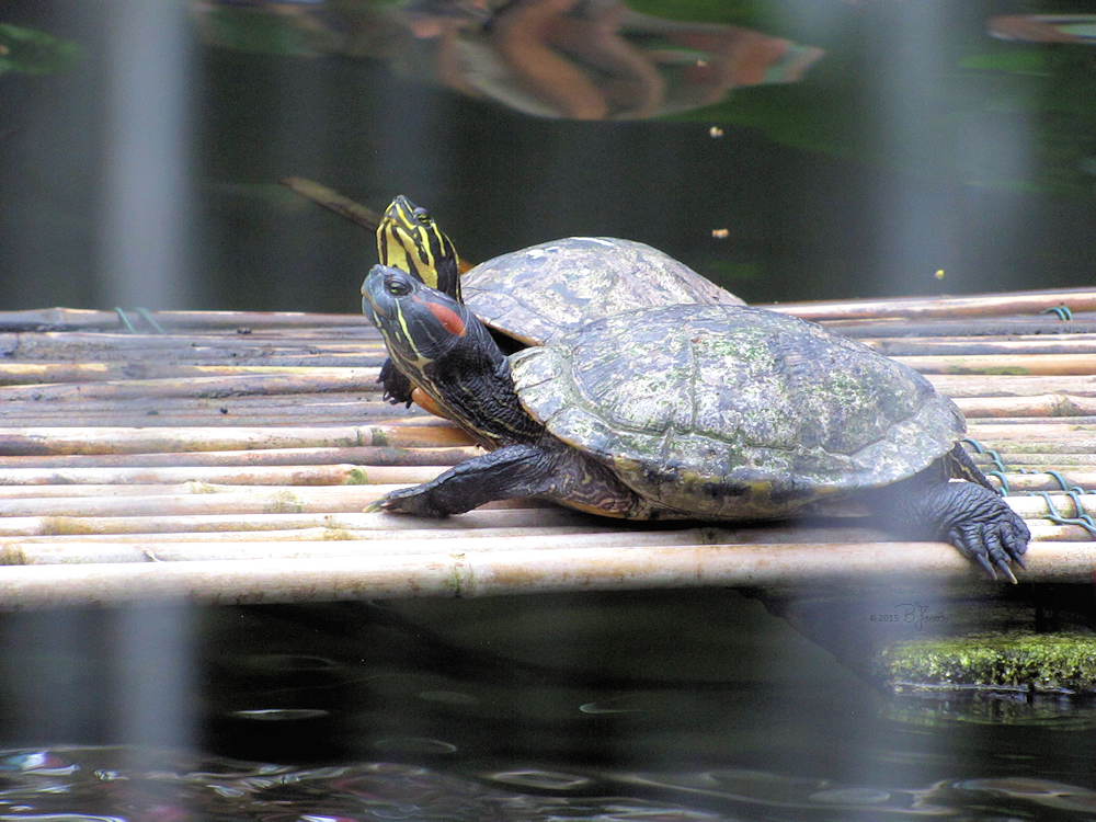 diese zwei hier sassen im Schmetterlingshaus im Teich und liessen sich nicht wirklich von den Menschenmassen um sie herum stören... -