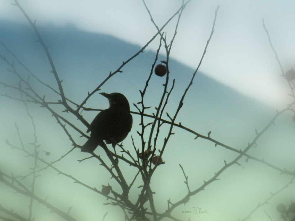 Die Blätter hat der letzte Föhnsturm schon geraubt, aber die Früchte waren hartnäckiger und dienen noch als Nahrung.