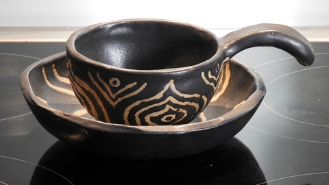 Handgearbeitet, grbrannt, mit wachs die Muster gemalt und glasiert und noch mal gebrannt ![]()