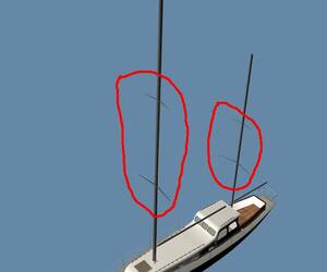Oben an den Masten sind die Salinge montiert. Diese spreizen