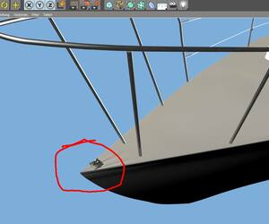 der Draht der vom Bug zur Mastspitze des Hauptmastes führt, angebracht.