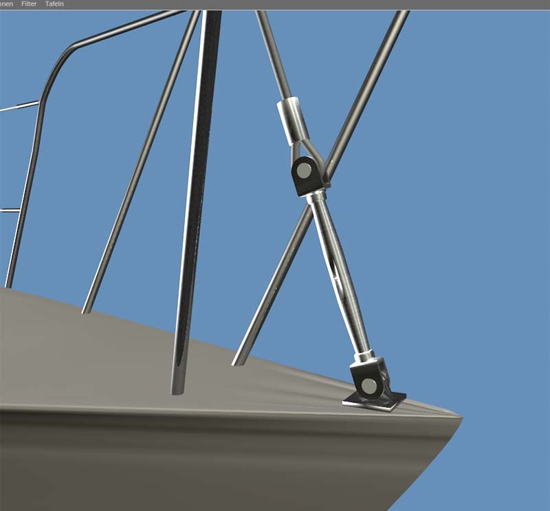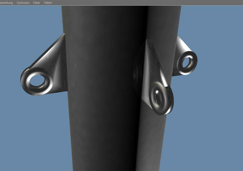 Die Wantenspanner sind konstruiert (mittlerweile auch als Download hier) und der Vorstag, das ist