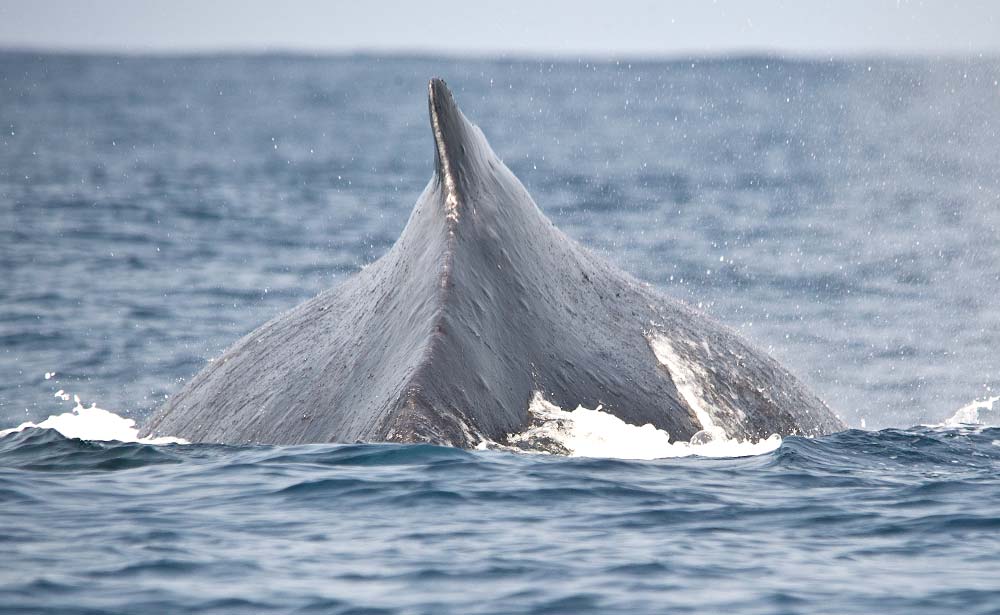 b. Die Fluke ist mehr odder weniger ungleichmäßig. Durch Verletzungen, Haibisse u.ä.