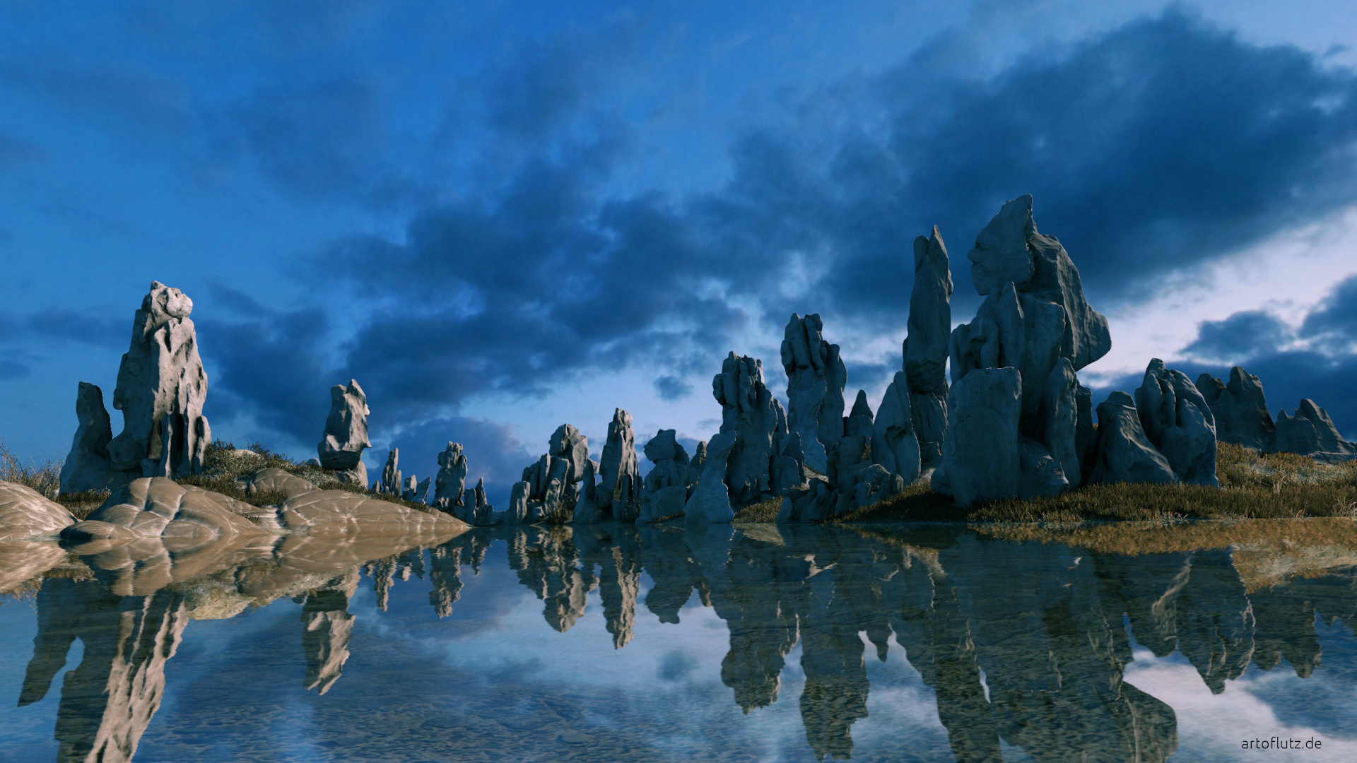 Abstrakte Objekte mit der Natur zu verbinden ist ein anspruchsvolles Thema. Teilweise sind mir schmutzige Texturen einfach zu viel und oft sind die Objekte zu groß, zu dominant positioniert. Mehr Raum, Weite würde deinen Bildern gut tun., so wie du es bei Radar Trees of Fjordach getan hast.