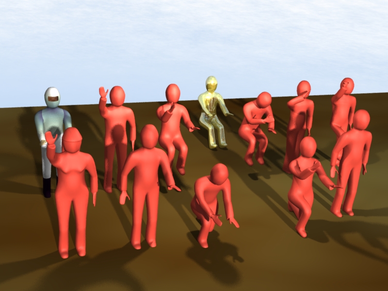 Anfangs habe ich noch per Hand an Punkten und Kanten gezogen und gezerrt um den Dummy hinzustellen bzw ein Frauchen zu verpassen.