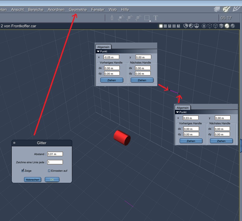 Ich hab mich mal an deinem Beispiel orientiort, dennoch sieht das Gitter bei mir gänzlich anders aus?!ZitatAber Du hast schon Recht, in den Preferenzen steht für Splinespacing 0,01m und das stimmt nicht.