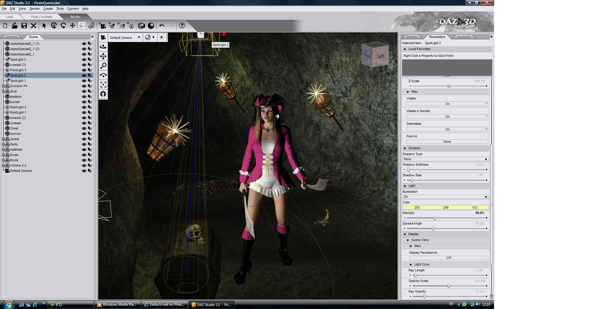 Im bereich 3D arbeite ich mit Daz3D, Cinema4d, Ab und zu dann mal Bryce da steig ich aber noch nicht durch