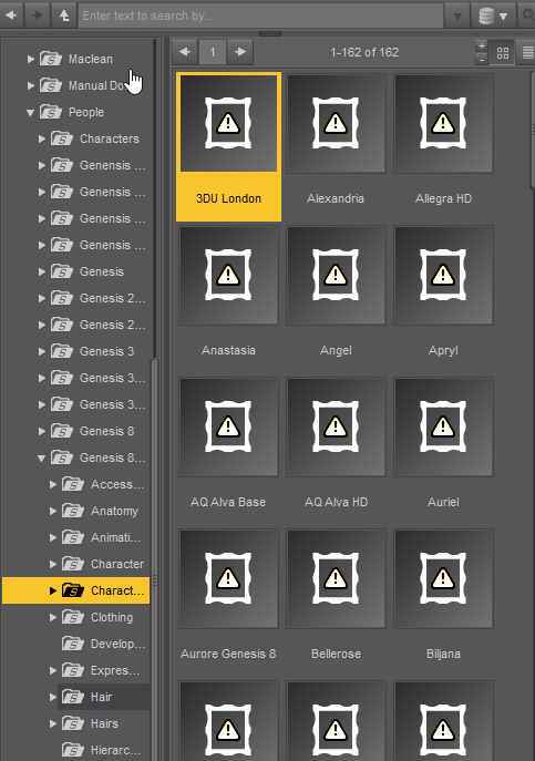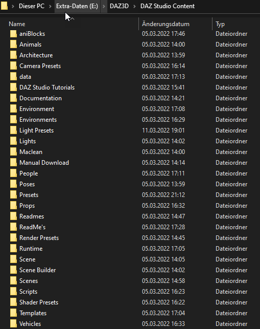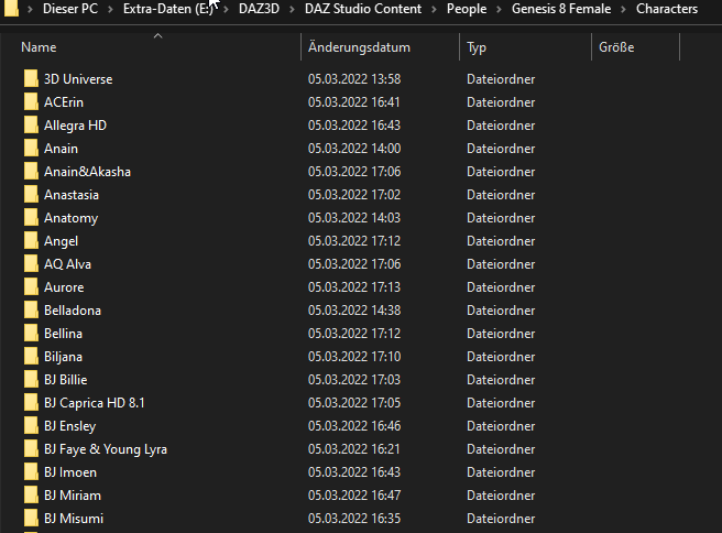 Der Speicherort z.B. der angezeigten Genesis 8 liegt unter E:\DAZ3D\DAZ Studio Content\People\Genesis 8 Female