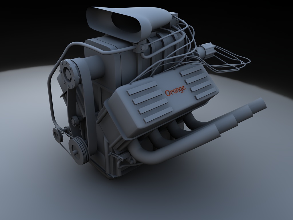 Naja bisher ist erst der Motor mehr oder weniger fertig.Es fehlen noch die Anschlüsse an den Kabeln und Schläuchen.Ausserdem noch ein Paar Schrauben hier und da sowie Texturen.Mit der Hood bin ich auch noch nicht so recht zufrieden.