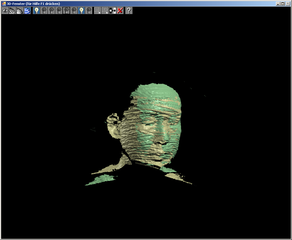 Der erste, zweite,.... fünfte Scan aus verschiedenen Perspektiven, werden dann überlagert und abgeglichen