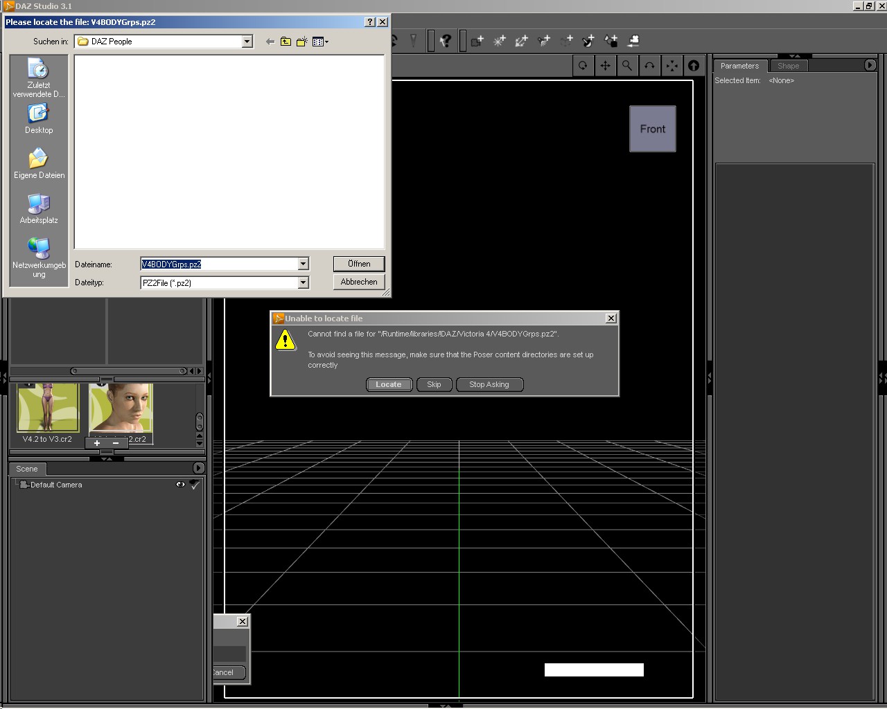 Doch: ...DAZ\Victoria \V4BODYGrps.pz2 . Ich finde die Datei auch; ich kann V4 also laden. Hab nur keine Lust, wieder andauernd die Verzeichnisse zu Fuß zu suchen.