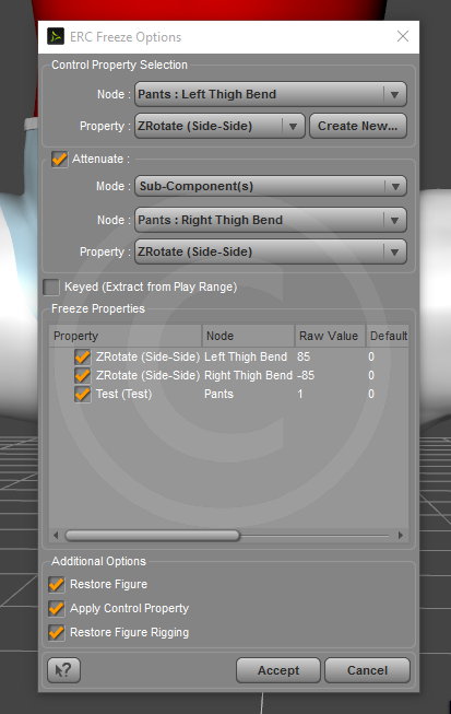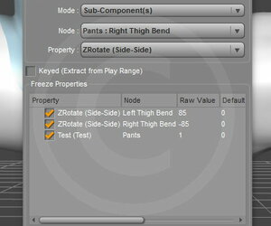Ich steh grad etwas auf dem Schlauch. Und zwar habe ich damals, als ich das Thema aufgemacht habe, einen Bikini für G3F angepasst, was dann auch wunderbar ging. Dabei habe ich (ich könnte schwören, das es so war) Für den Pose Control "Legs Out", der Tigh-Bones in Side nach aussen klappt, einen extra JCM erstellt. Mit ERC Freeze an Left Tigh/Side angeklippt mit Sub-Component Right Tigh/Side, damit der Morph immer dann auslöst, wenn beide Beine in Side nach aussen gehen.