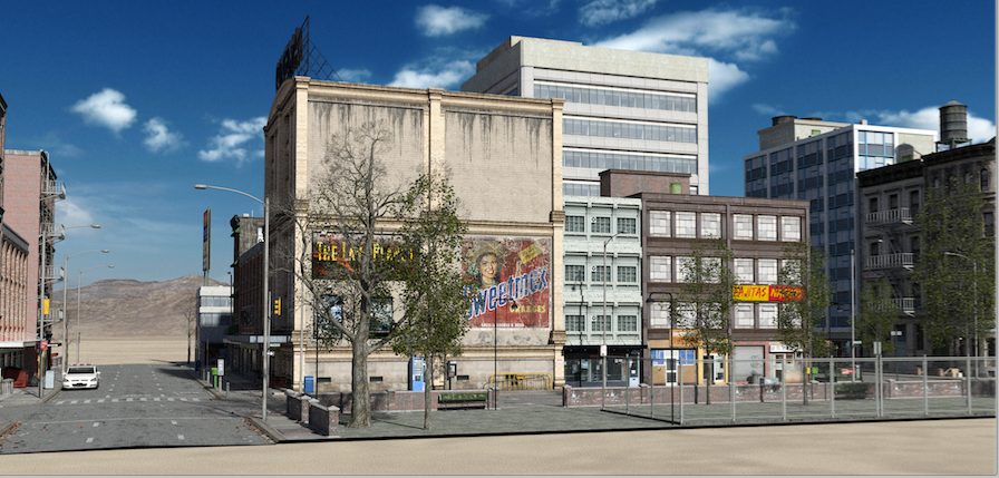 1) nach dem Laden von Urban Sprawl 3, Renderergebnis rechts daneben.