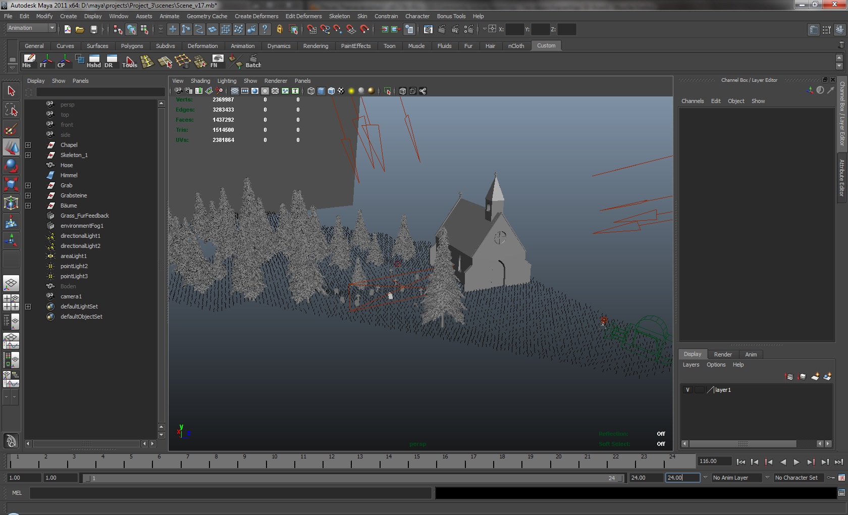 Ja natürlich ist das viel zu heftig. Wäre das Ganze für ein Game, wäre es auch völlig sinnlos, all diese Objekte in eine Szene zu packen. Man würde dann jedes Objekt in einer einzelnen Szene erstellen, Animationsloops basteln und das Ganze dann erst in einem Game-Editor (z.B. Unity) zusammenführen.