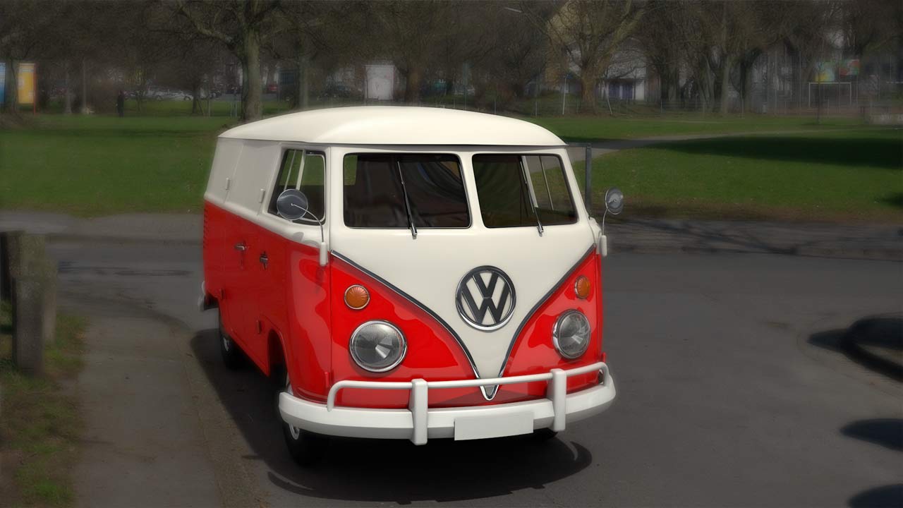 Der VW Bulli vom 'Grayscale Gorilla' etwas modifiziert, damit man ihn auch zweifarbig machen kann und dann hier auf die Straße gestellt