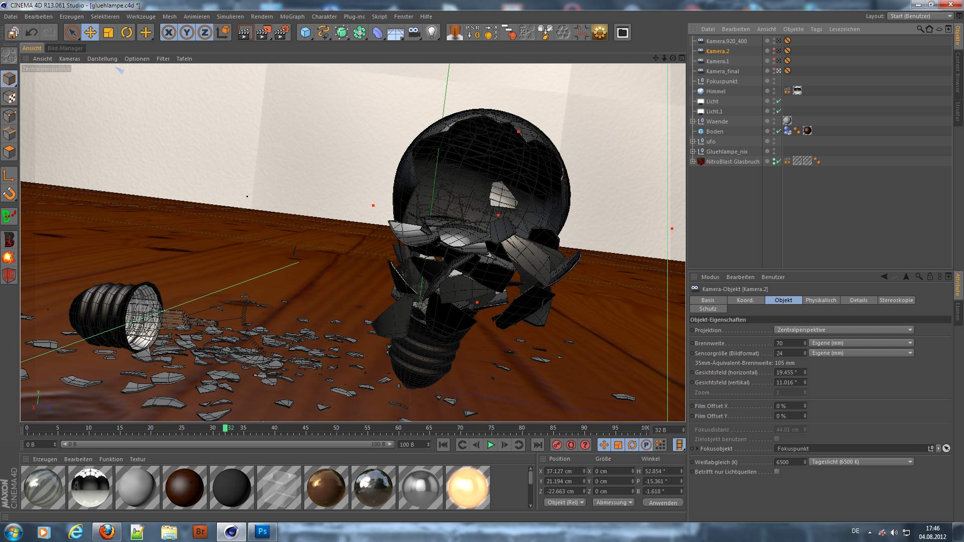 Gemacht wurde das Bild mit dem "Physikalischen" Renderer, der mit der R13 gekommen ist. Die Kamerawerte waren