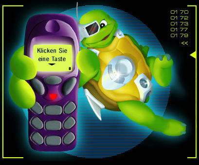Habe hier mal was aus den 90ern ausgebuddelt. Würde ich heute sicher noch etwas anders machen, zumal das Handy nicht ganz sauber gearbeitet und aktuell ist *zugibt* ... die Schildkröte wurde auf Basis einer Handskizze in Photoshop mit der Maus coloriert. Das Motiv befand sich damals auf einer Website, wobei die Tasten Button waren und im Display via Script angezeigt wurde, wohin die jeweils ausgewählte Taste führt.