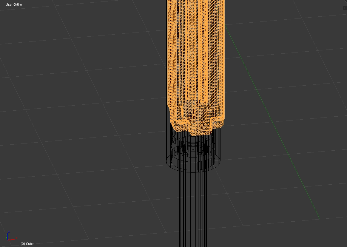 Um die Simulation leichter testen zu können, habe ich das Ganze senkrecht nach oben ausgerichtet. Damit sollte das Fluid nach unten in den Hohlkörper fallen, wie in einer Röhre.