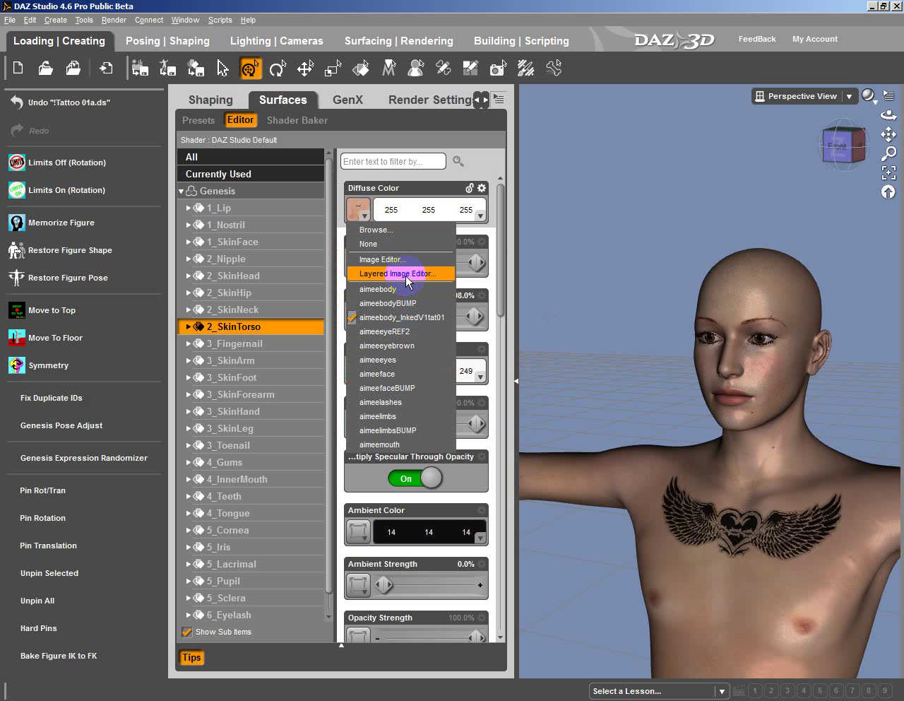 Okay,Anfängerfehler sind zum Lernen da.Deshalb zwei Fragen,welches Tattoo-Programm und welches Piercing-Programm muß ich mir besorgen? Wie gesagt,DAZ 4.6. Ach ja,Maya läßt sich bis auf Bodypaint sehr gut gestalten.