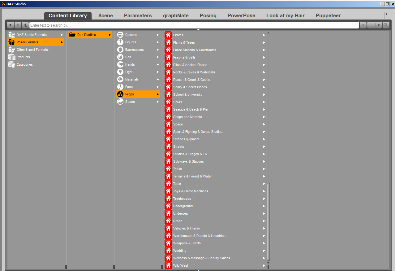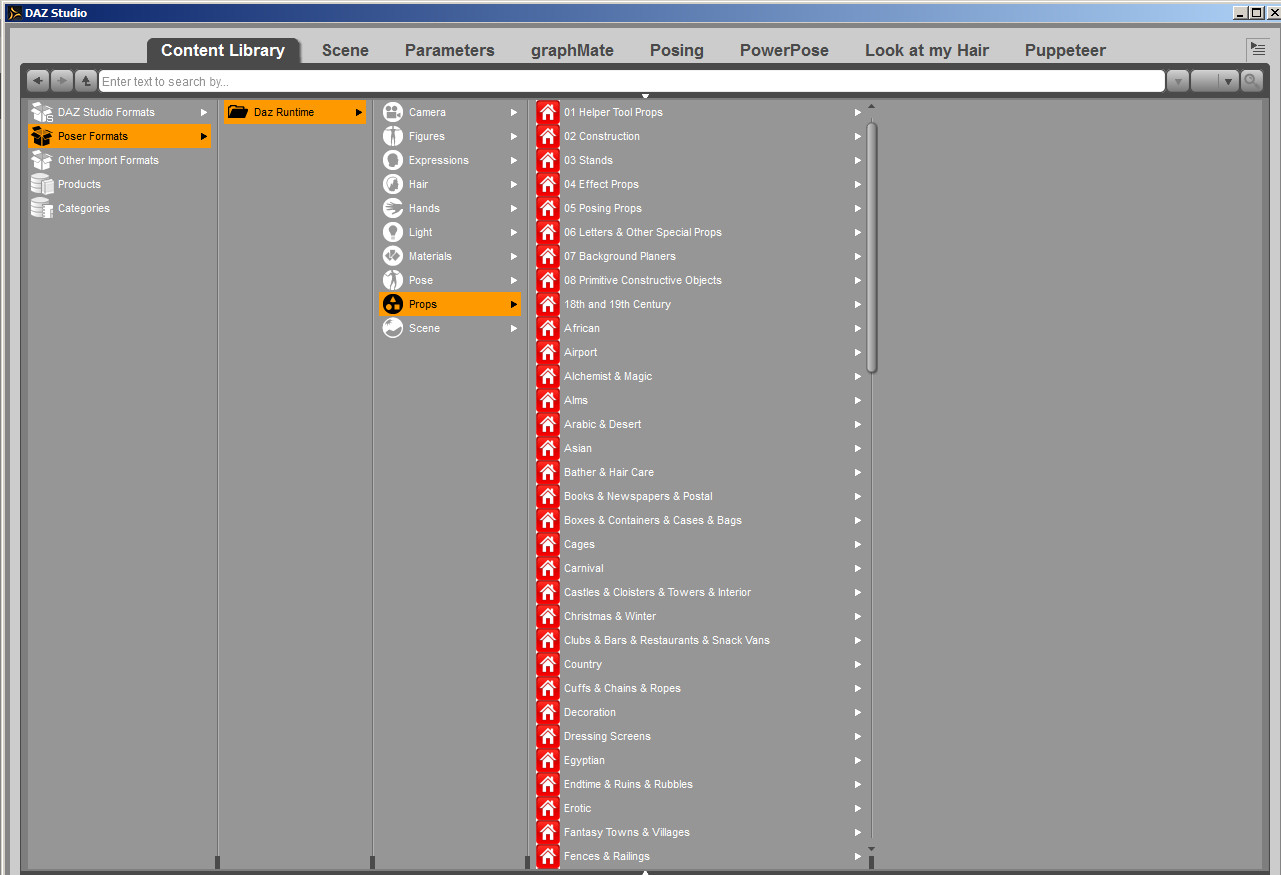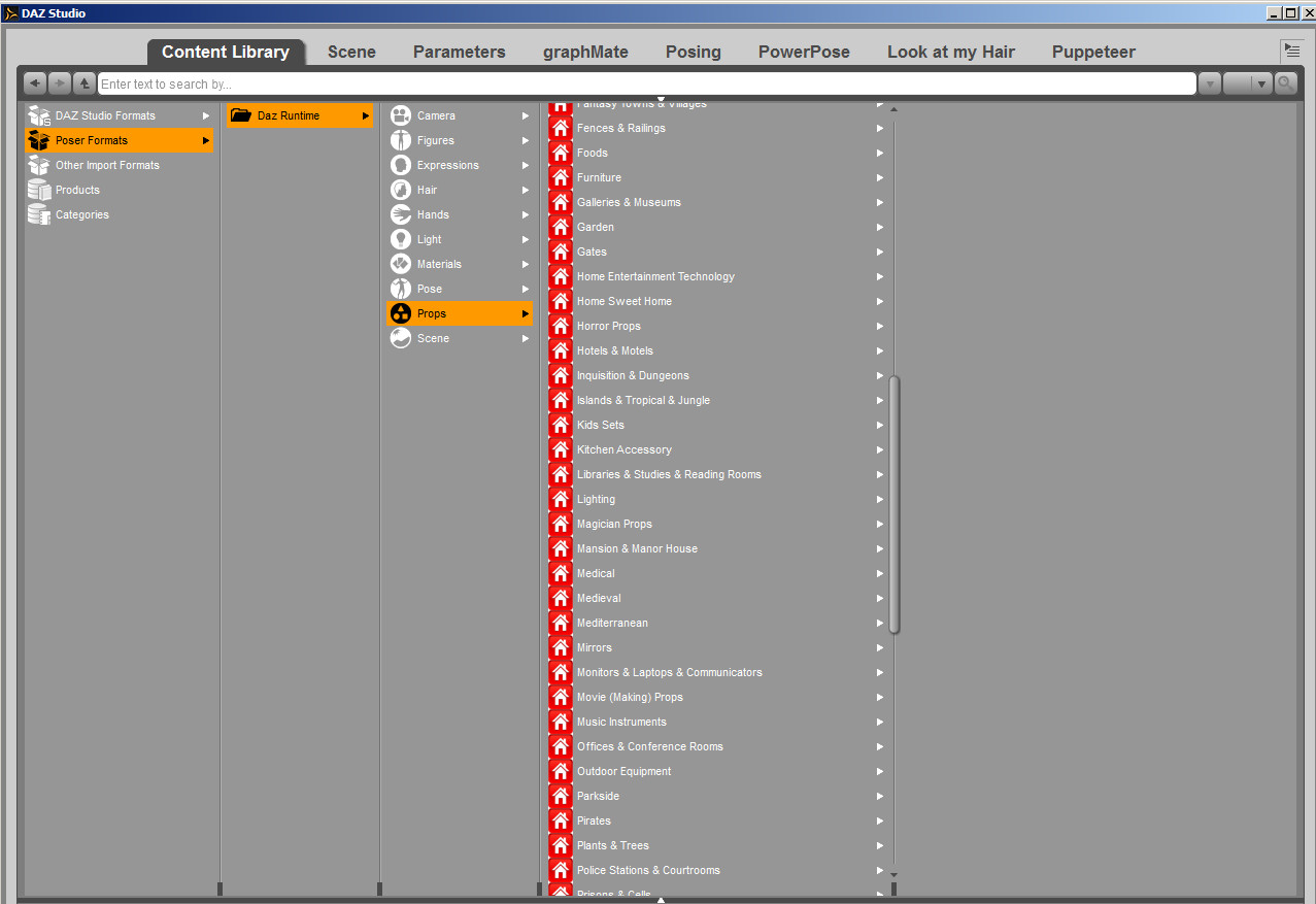 ich ziehe den Runtime Ordner korrekter Weise in den bestehenden Runtime Ordner meiner Bibliothek und natürlich taucht das Prop dann in DAZ nicht auf. Jedenfalls nicht in meiner eigenen Bibliothek. Dafür aber in der Poser Bibliothek "Poser Formats"
