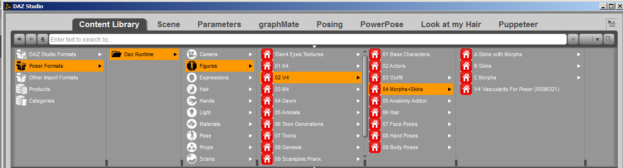 Die Ordnerstruktur entsprach bis auf wenige Ausnahmeordnern der Poser-Ordner-Struktur und DAZ Studio nutze auch zum größten Teil die Poser-Datei-Formate.