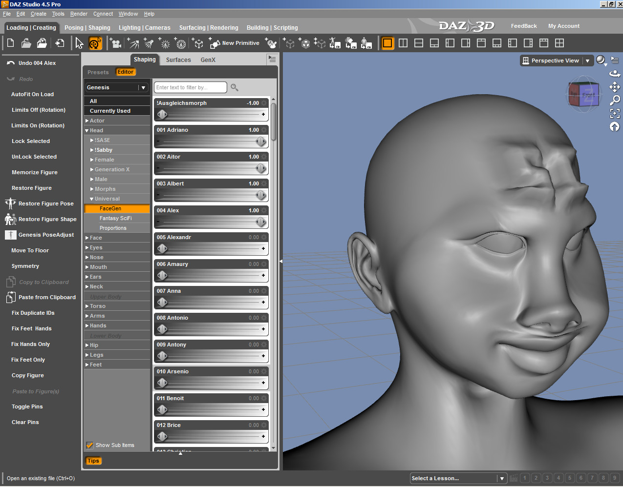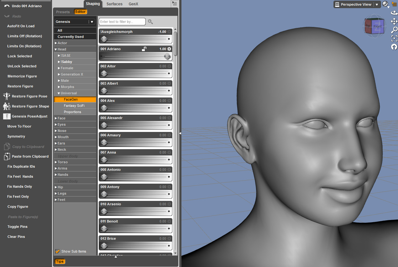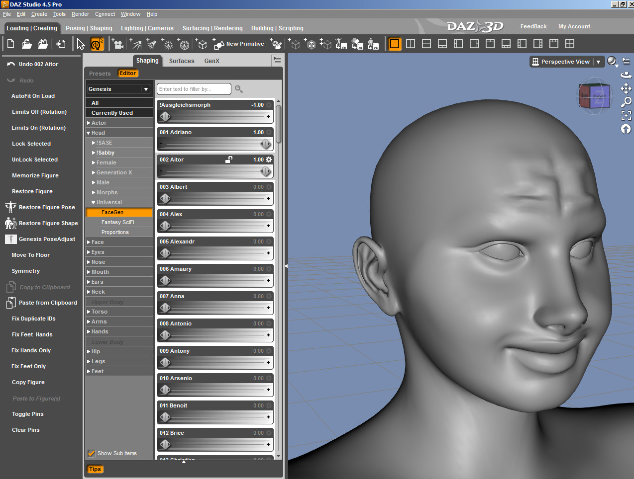 Habe ich eine Figur komplett mit Morphs erstellt, gehe ich