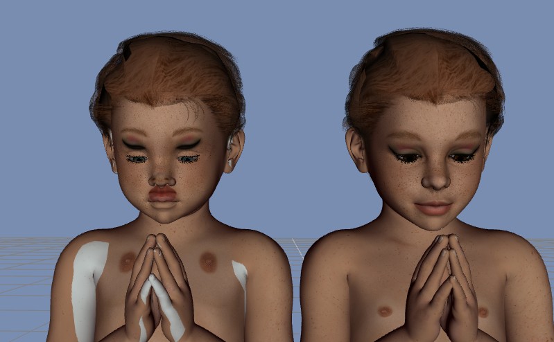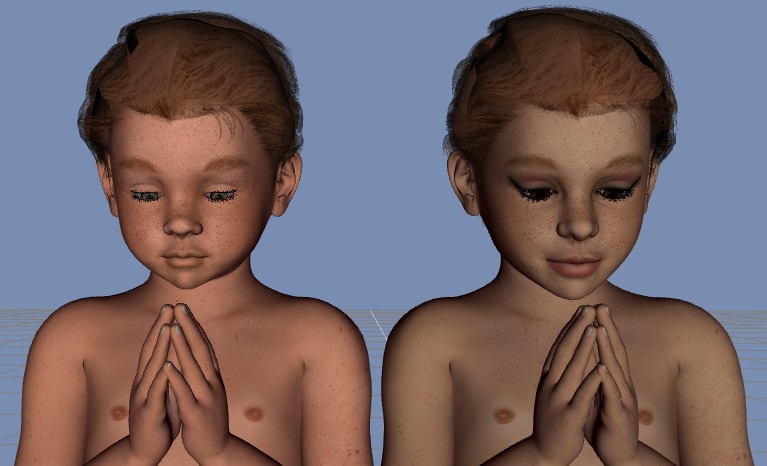 Was der direkte Vergleich DAZ/Poser betrifft, so finde ich, dass die Skins (zumindest bei diesem Test) mit DAZ Studio 4 "echter" wirken als mit Poser (obwohl die "Testfiguren" sogar in Poser erstellt und die Textur damit zugewiesen wurden).