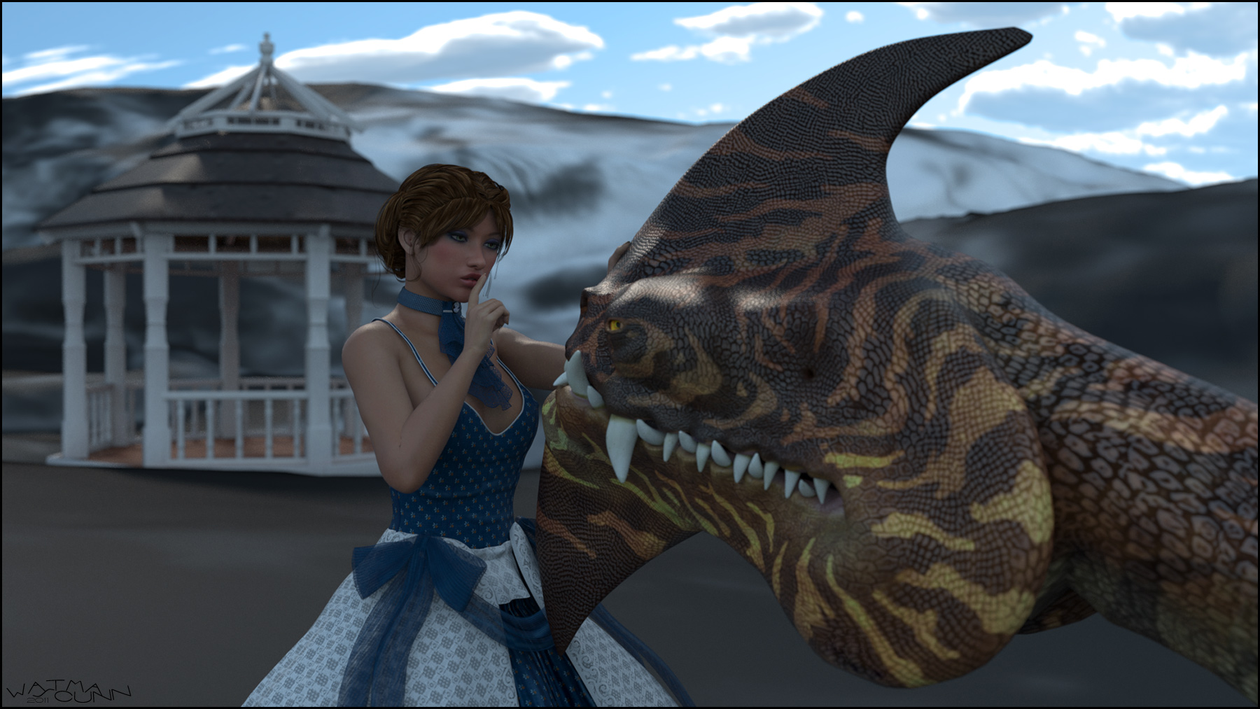 Selbst im Angesicht des Drachens führt sie unbeirrt ihren Tanz weiter auf. -
