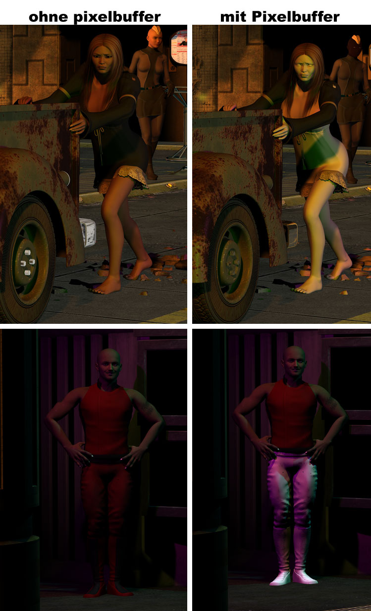 Wozu ich aber keine Erklärung finde ist: Warum sieht ein Bild mit aktiviertem Pixelbuffer anders aus als ohne - so wie das angefügte Bild zeigt...