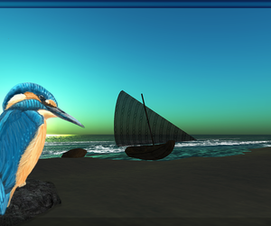 esha: ja, ich glaube auch nicht, dass Eisvögel in so einer Gegend auftauchen, aber meine Bilder sind alle nicht realitätsgetreu - eben künstlerische Freiheit, grins. Und ich benutze nur Dinge, die ich ich selber gemacht habe bzw. Fotos (screenshots) wie die aus Second Life, die ich selber dort 'geschossen' habe oder eben auch oft die, die man von der NASA (Hubble) benutzen darf:-) Aber danke für den Hinweis:-)