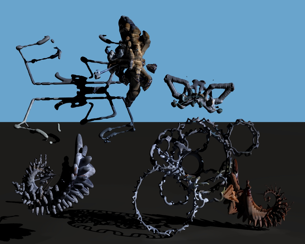 Im Moment lerne ich alles querbeet und durcheinander (planlos im Weltall?). Dazu habe ich mir praktisch alle Modeler, Raytracer und Malprogramme die kostenlos greifbar waren geholt und ausprobiert und bin immer noch dabei herauszufinden, was sich wofür am Besten einsetzen läßt. Messiah Studio war mein erstes Profi-Tool und jetzt zu Weihnachten habe ich ergänzend dazu noch Modo, Silo und 3DCoat mit Recoil zu gelegt und den Städtegenerator UrbanPad. -