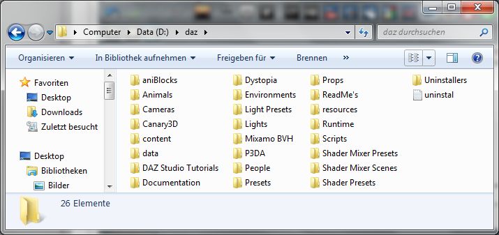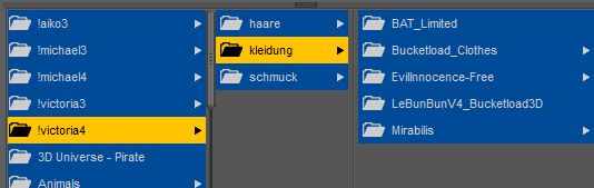 Ich habe DS4 nach Vorgaben installiert, da aber meine C: Platte nicht dafür geeignet ist, habe ich My Library- Inhalt nach D: Platte kopiert (Nicht verschoben). Auf D: Platte liegen sie in einem Ordner im selben Struktur wie nach der Installation. Nach dem habe DS4 gestartet und unter TAB: Content Library -> Tab Options -> Database Maintenance zuerst Reset Database markiert und durchgeführt, anschließend Re-Import Metadata. Sortieren tue ich immer innerhalb Runtime/Charakter oder Runtime/pose etc. Wenn ich was neues installiere, wähle ich mein Pfad immer: D:\daz, ansonsten aus dem Zip oder Rar; Runtime Ordner reinschmeissen (Auch auf Beschreibungen vom Anbieter achten)