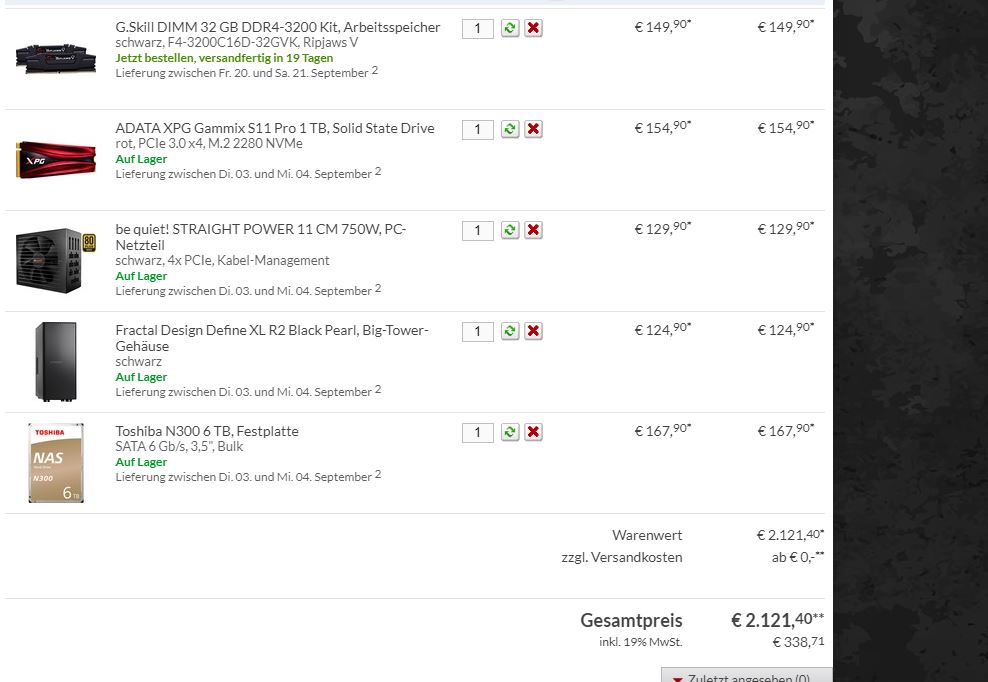 Mein kaputter Pc ist von Alternate, damals ca. 3000 bezahlt.Ich lebe am Arsch der Welt, also habe kein Händler um die Ecke