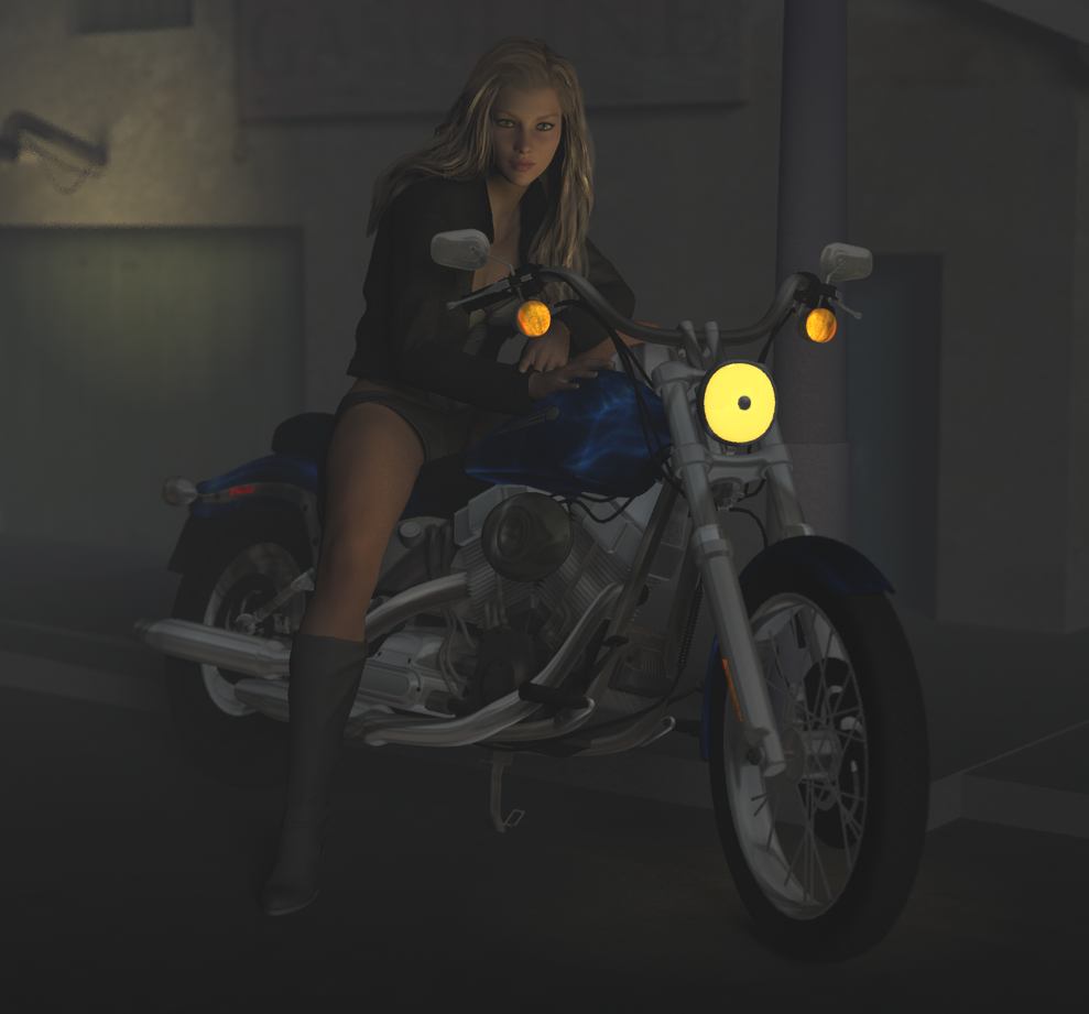 Wie man sieht steht sie mit ihrem Bike unter einer Laterne aber ich kriege es einfach nicht hin das diese einen vernünftigen Schatten geschweige denn eine brauchbare Beleuchtung hat.