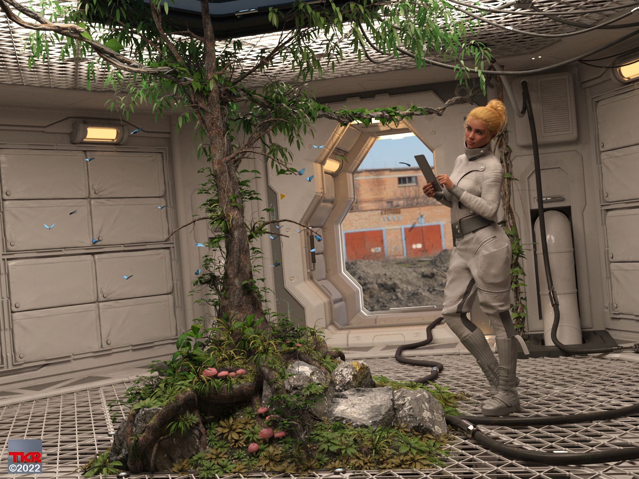Ich suche das Outfit der jungen Dame sowie die Umgebung - das Zimmer.