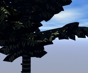 Doch doch, Bryce kann das auch, mitunter muss man nur etwas tricksen: Wenn bei einer existierenden Textur der Alpha partout nicht transparent werden will, muss man ihn einfach dazu zwingen. Erstmal dem Ganzen ein einfaches Material zuweisen (im Beispiel simples Weiss), so dass der Texturkanal seine irgendwie schräg interpretierte Texturinformation verliert und danach die Maps einfach neu zuweisen. Siehe Screenshots. Auch empfiehlt es sich, dem Stamm etwas Bump zu verpassen.