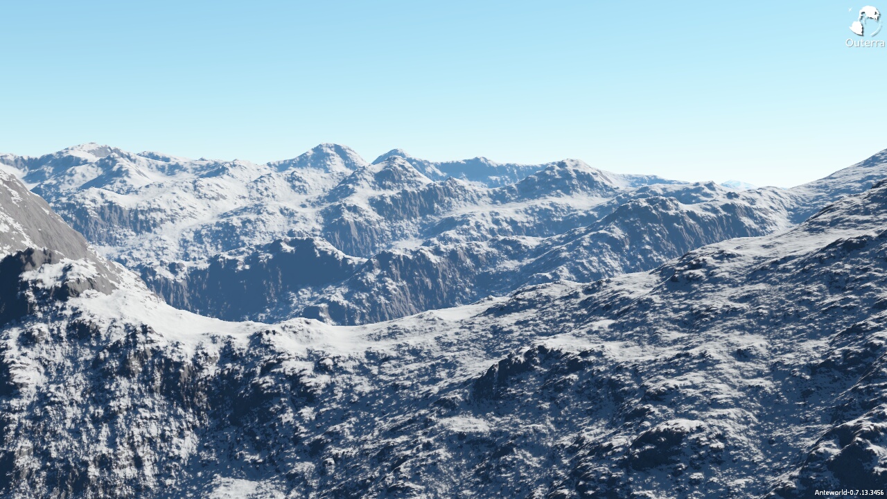Verwenden als Hintergrundbilder? Nee, ich brause hier mit der Demo wie blöde durch die Gegend. Habe zwischen 100 und 300 FPS und einen riesen Fun. Eigentlich wollte ich was mit Terragen 2 machen, bin aber auf Outerra kleben geblieben.