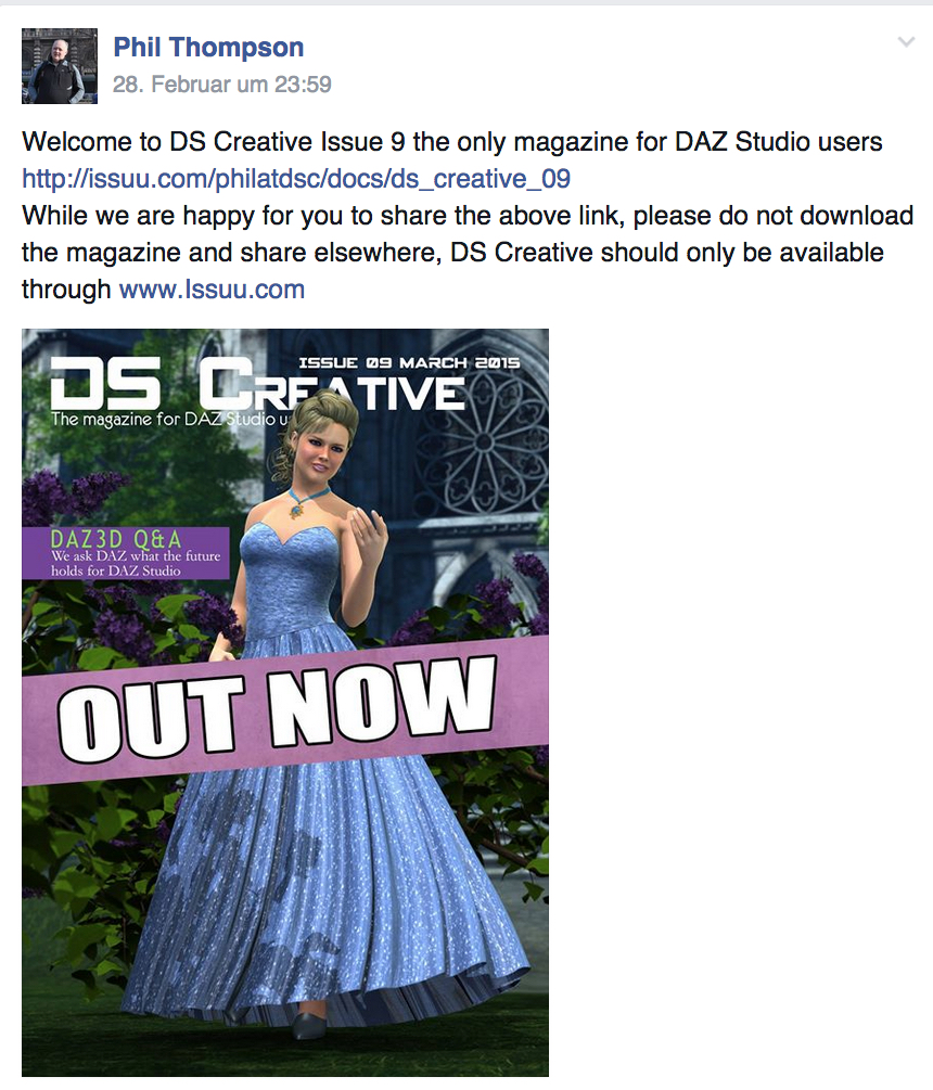 Anbei ein Post aus der Facebook Gruppe DS Creative...