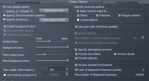 mit den vue-eigenen SG-pflanzen ist das kaum ein problem. die sind speziell für das eco-system ausgelegt, so dass mehrere millionen bäume mit einem durchschnittlichen PC akzeptabel zu handhaben sind. problematischer wird es nur, wenn man pflanzen von drittanbietern verwendet und diese in grossen mengen per eco-system nutzen will. abgesehen davon, dass man dann einige features nicht nutzen kann, wird der PC schnell in die knie gezwungen und die renderzeiten steigen exorbitant an.