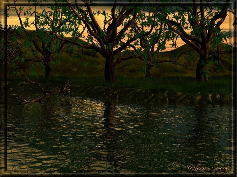 auch das man unten den Rahmen nicht mehr sehen kann.. wer weiss.. vielleicht gehts nämlich weiter *g* Ach ja.. und die vorderene Bäume haben keine roten Punkte.. wenn man genau hinsieht.. dann erkennt man Gesichter ;).. so.. genug erklärt.. den Rest dürft ihr selbst rausfinden :D