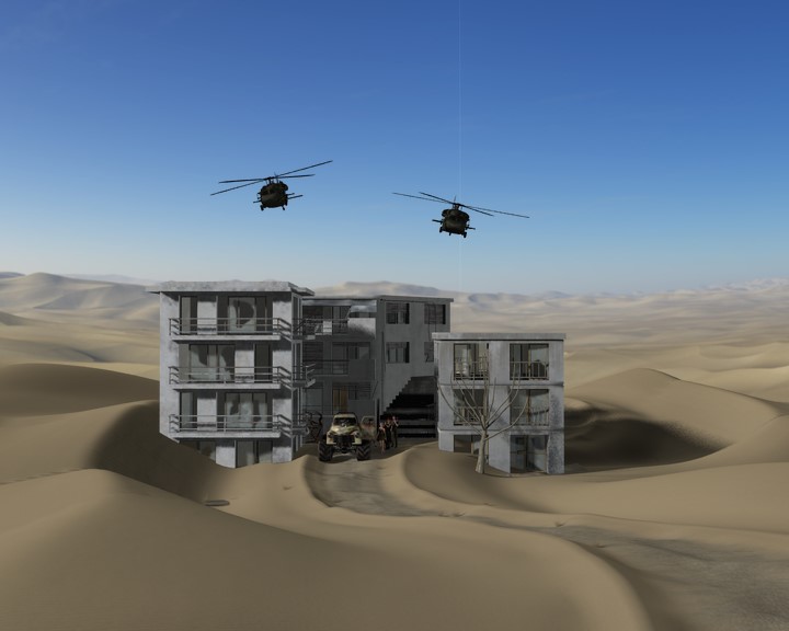 Die Hubschraubertypen (je zwei, je Teil) brauchen auch noch Funkkontakt und müssen dann auch noch irgendwie niedergemetzelt werden (Absturz, Explosion und Effekt...).Ich schreibe das jetzt nur, da mir eben diese angedachte Strecke sehr wichtig ist und ich sie zuerst in der Gesamtheit fertig bekommen möchte.